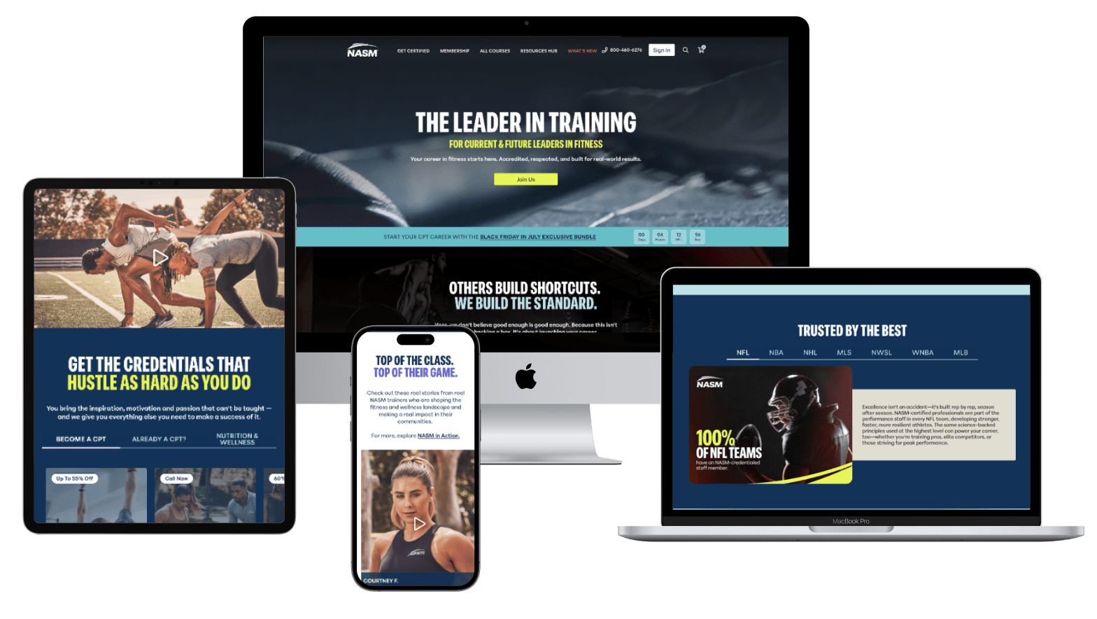 The initial request was to make pages less cluttered and more engaging, utilizing video content and cohesive storytelling to more smoothly convert potential customers. The larger challenge was to create product page templates that balanced the marketing needs for each individual product while still conforming to a data structure that could be applied to all products of the same type. In the end, we created four product page templates that allowed NASM the freedom to give special attention to their most important products while making it easy to upload and maintain a library of over 100 courses, certifications, and bundles.